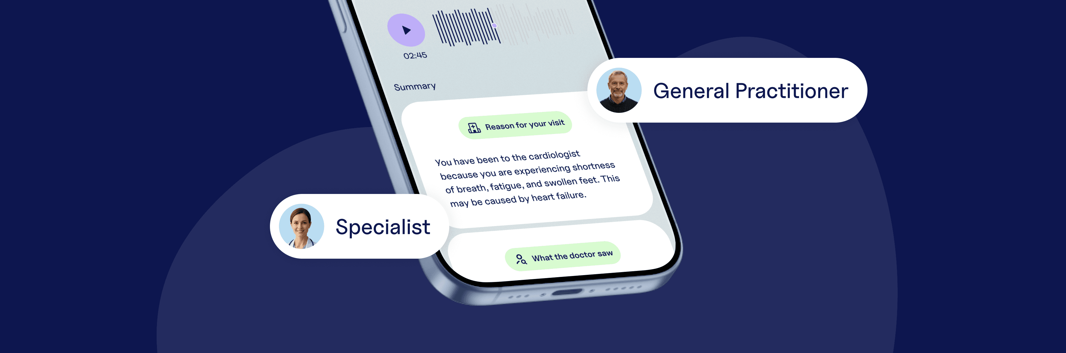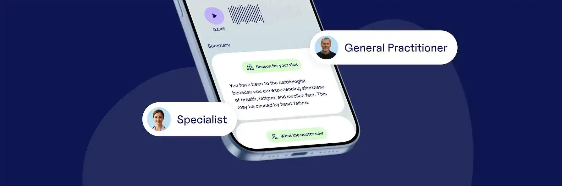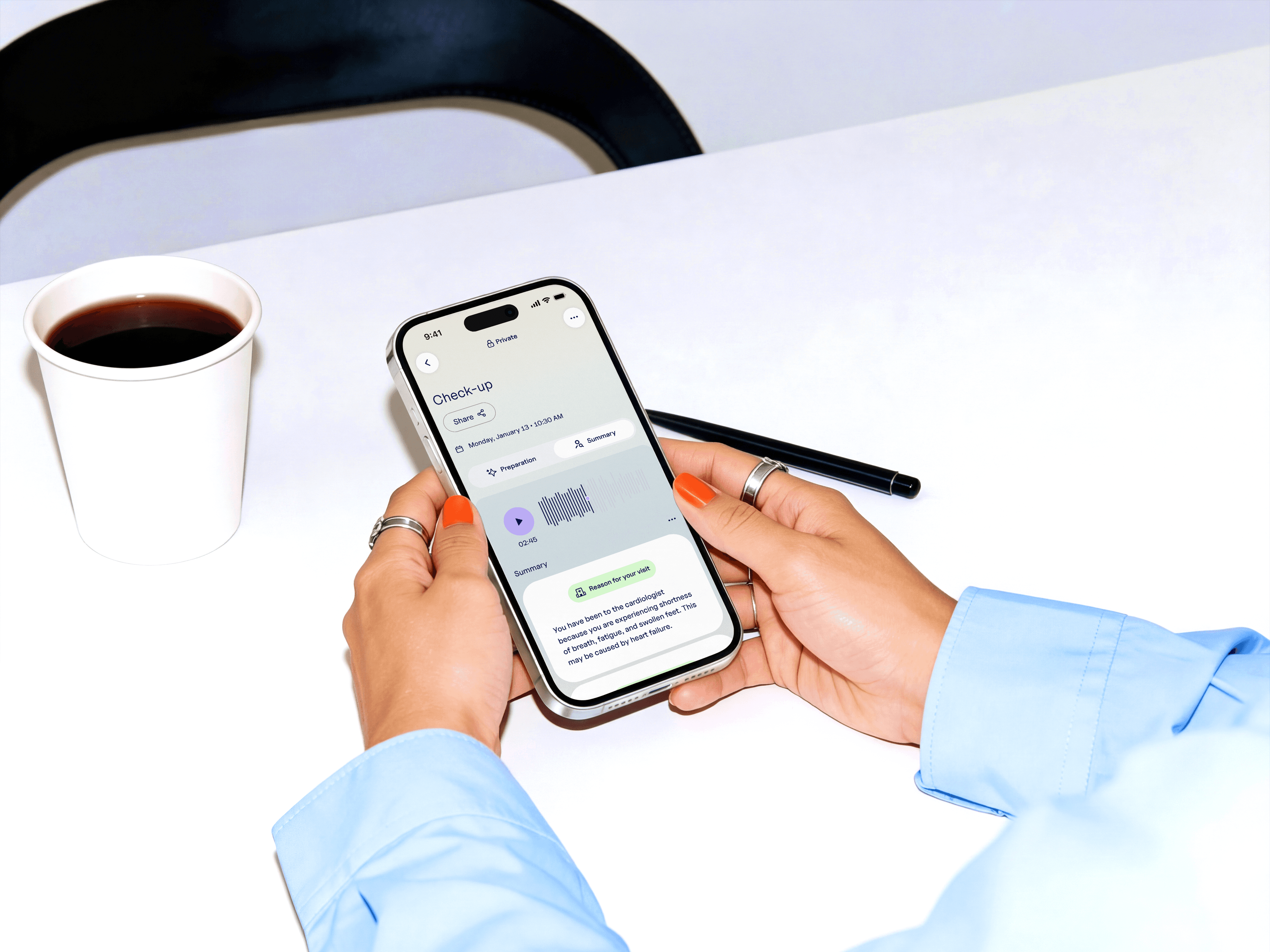 Recordings and summaries are only stored on the device of the patient. Some patients may ask you to cross-check the generated summary. If they want, they can share it with you directly, either by adding you to their Care Circle or sending it through another communication channel.